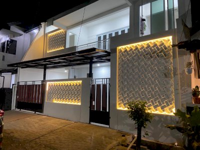 Lantai 2 terdiri dr 3 kamar tidur 1 kamar pembantu , ruang londry 1kamar mandi di atas ruang tv dengan partisi nya balkon, sertifikat shm atas nama fathiyah fetty salim tidak ada sangkutan atau tunggakan jual di hrg 1,2m